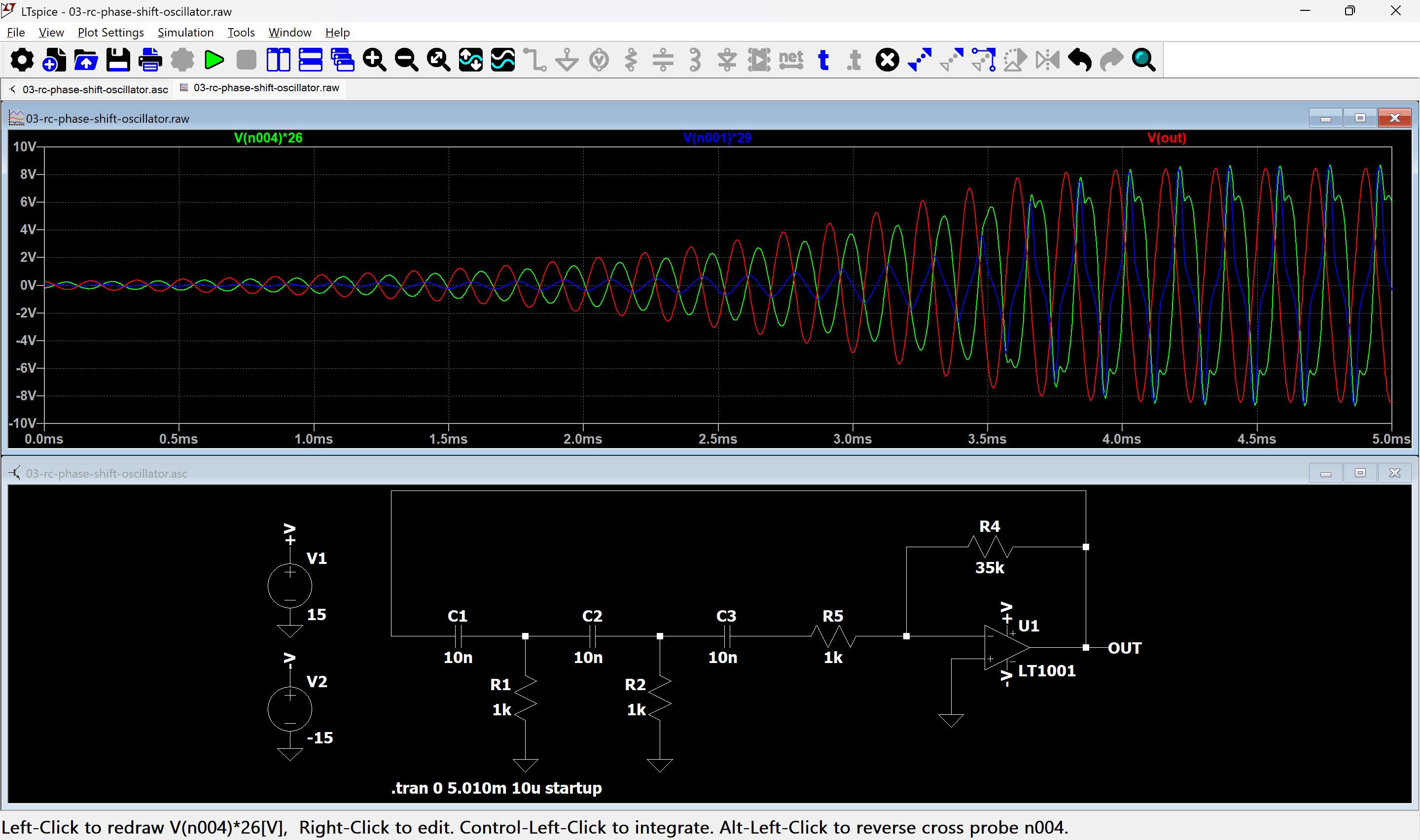 The frequency is far from the theory, 5.0 kHz instead of 6.5 kHz, and the gain needed for a quick start higher than the theory.