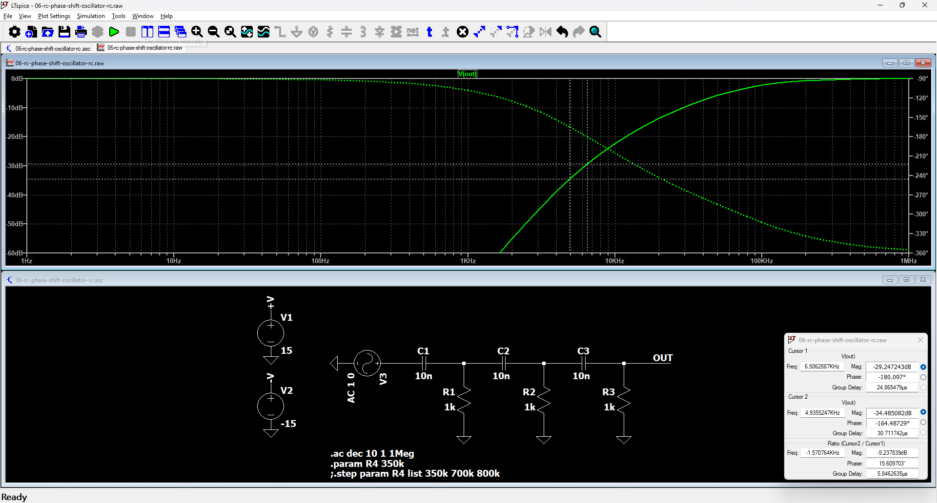 “Weird circuit… First, R3 should not have any effect. Second, why your frequency is shifted from the theoretical 6.5 kHz to 6.0 kHz ?”